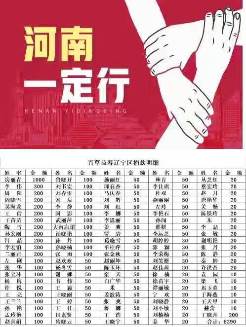 在看到在灾区报道之时,百草益寿辽宁区员工自发组织为灾区同胞捐款,将自己的爱心交付到河南省慈善总会。